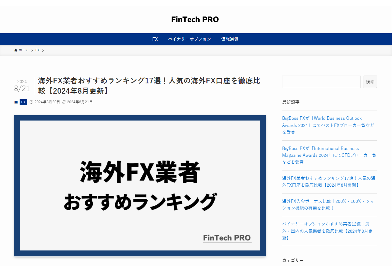 様々な金融に関する情報を発信していますが、中でもメインとして海外FX、バイナリーオプション、仮想通貨などのジャンルを取り扱っています。