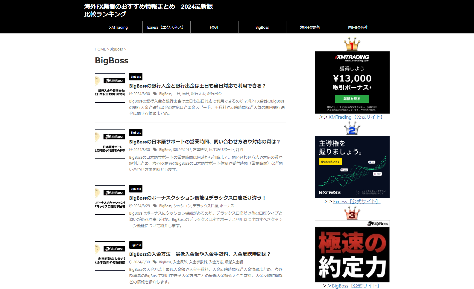 BigBossファンメディア紹介 vol.60 ~ 海外FX業者のおすすめ情報まとめ~