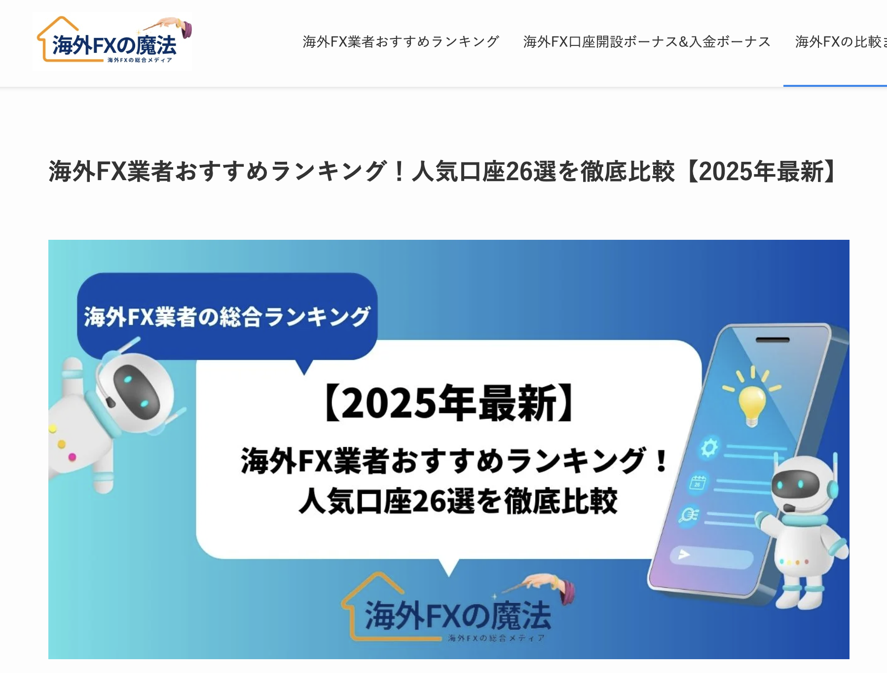 海外FX業者の比較ランキング記事をはじめ、各海外FX業者コラム記事などや海外FX取引時に役立つ記事なども公開しており、初心者の方から上級者の方まで幅広い投資家の皆様におすすめのメディアとなっております。