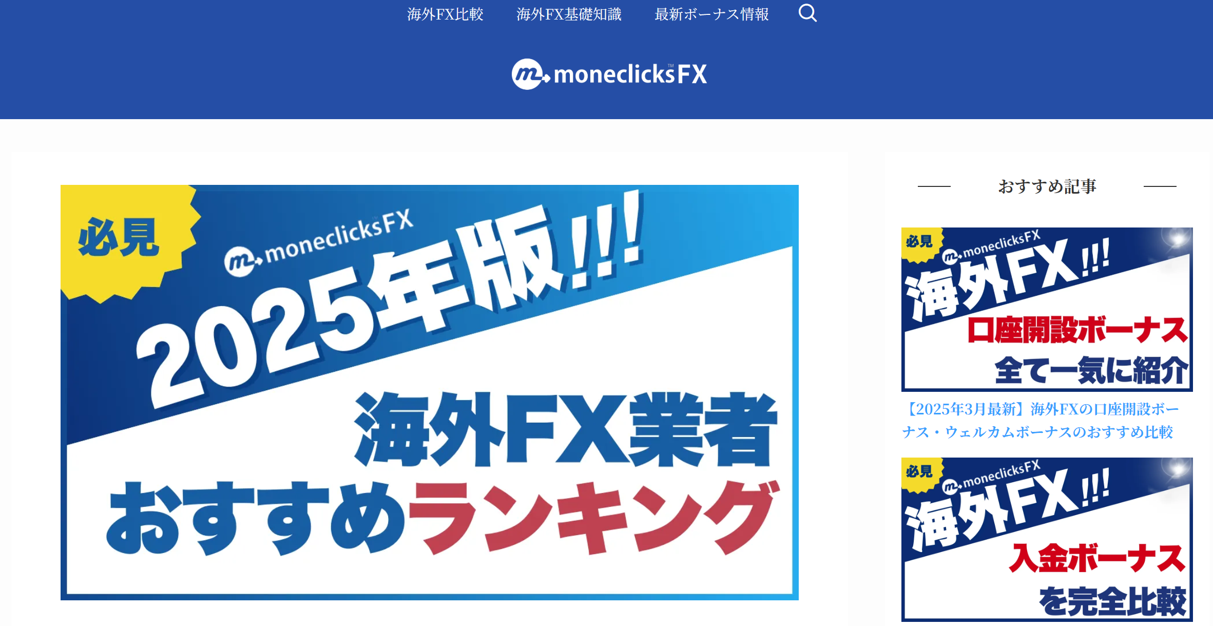 そんなmoneclicks FXは、入門者から上級者まで幅広く支持されています。特に各海外FX業者の情報を比較した「海外FXおすすめランキング」はランキング上位に位置し、現在の最新のボーナスを常に比較している「海外FX入金ボーナス」や「海外FX口座開設ボーナス」においては、BigBossの充実したボーナスの説明も掲載しております。