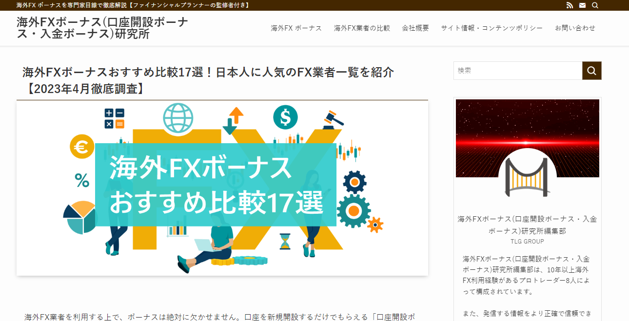 第38回目は【海外FXボーナス(口座開設ボーナス・入金ボーナス)研究所】様をご紹介致します!