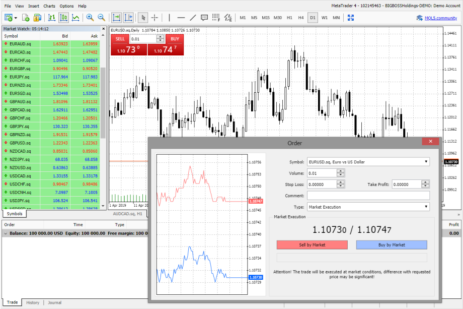 Functions of MT4 WebTrader on BigBoss homepage are limited.