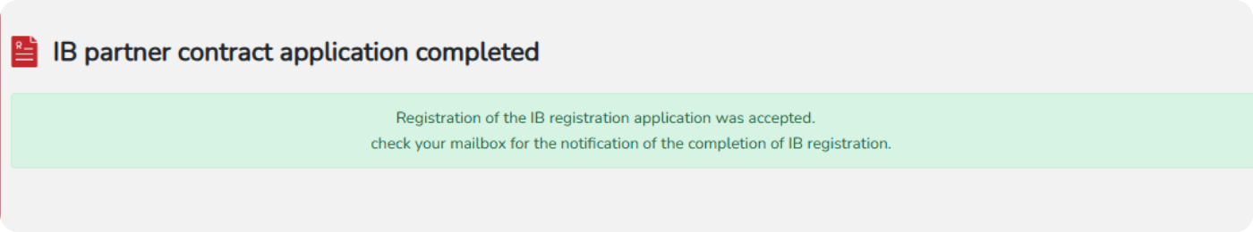 IBパートナー契約申請受付完了画像 スマホ版IBパートナー契約申請受付完了画像